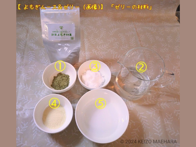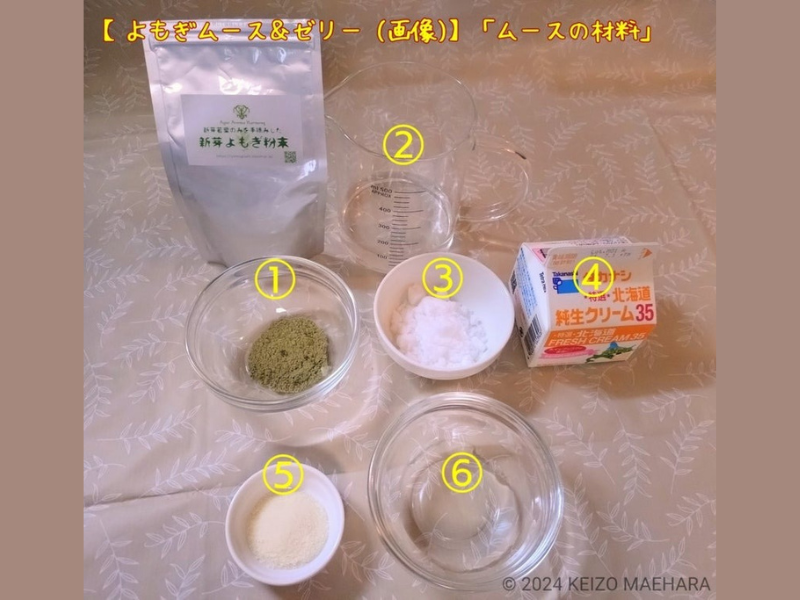 今回作った「よもぎムース&ゼリー二層デザート」のよもぎ粉末は「新芽よもぎ粉末」を使用してます!