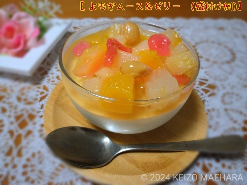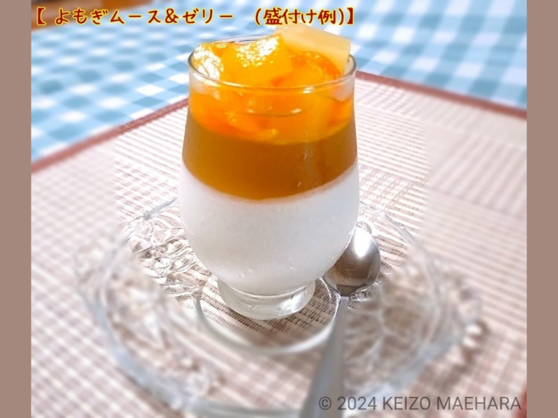 楽しい仲間とワイワイ過ごす時によもぎの優しい美味しい甘みで特別なひと時を演出、ゼリーとムース別々の食感を同時に楽しめ、お好みのフルーツをトッピングすれば更に美味しくいただけます