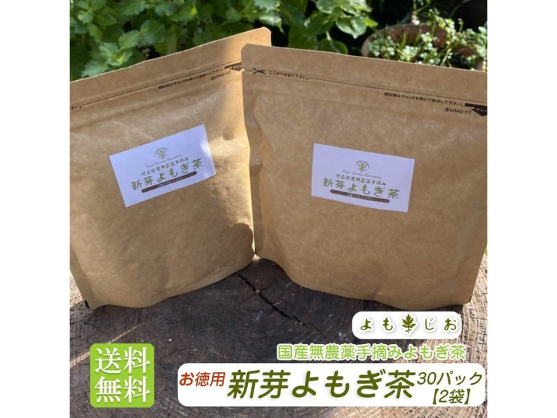 お得な2袋セット ★国産無農薬★ 新芽よもぎ茶 大袋30パック【新芽若葉のみ使用】