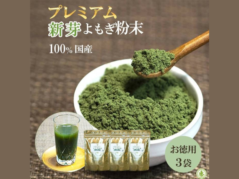 無添加無農薬100%の新芽若葉のみ使用したよもぎ粉末。